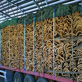 Biomasa: procedentes de la piña, obtenemos dos tipos de biomasa de alto poder calorífico y aromas naturales. Una más gruesa a partir del corazón y cáscaras grandes de la piña y otra fina, de cáscaras pequeñas y piñones vanos. Ambas válidas para su uso en calderas de calefacción industrial y doméstica.